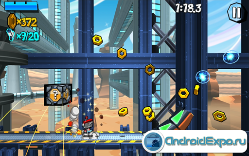 Roboto - изумительная и приятная игра для андроида с хорошей графикой и эффектами. Вы - маленький робот Робото, который буквально недавно научился кататься на своём классном ракетборде. Но вот огорчение - ваша любимая робото-девушка улетела на другую планету. Значит теперь вы должны добраться до космического корабля, на котором полетите за ней в соседнюю галактику. И путь ваш будет не легким, помехой станут другие роботы, и большие и маленькие. Надейтесь на везение и вы найдете какой-нибудь бонус в виде монет или апгрейда.