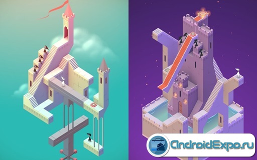 Monument Valley - игра головоломка на андроид, в которой вам необходимо провести принцессу Иди через запутанные архитектурные сооружения. Эта игра с сюрреалистическим направлением в которой вы попадете в таинственный мир, состоящий из невероятных архитектурных и геометрических сооружений, которые на ваших глазах будут меняться и искажаться в невероятные формы и иллюзии. Проведите принцессу по различным замкам и ищите скрытые дороги и мосты стараясь перехитрить людей-воронов мешающих вам передвигаться вперед.