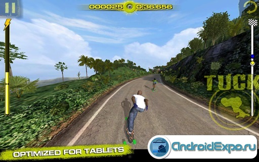 Downhill Xtreme - в этой игре на андроид вас ждут неимоверные гонки на скейтбордах! Горки и скаты, уклоны и пригорки - все это не просто ландшафт, а интересные треки любителей экстрима! Пройдите все препятствия и трассы быстрее соперника и получите много денег, чтобы приобрести новое снаряжение - доску и одежду для главного персонажа! Но не спешите думать, что все легко. Ведь соревнования проходят не только в дневное время суток, но и ночью. А это лишь добавляет интереса и драйва. Мчитесь с горки как бешеные, но только с головой! И тогда ваше первое место всегда буде за вами!